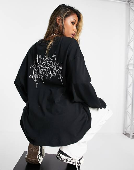 Topshop Los Angeles Long Sleeve Skater T Shirt In Black Asos