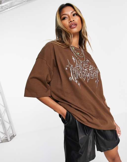 Topshop Los Angeles Short Sleeve Boyfriend T Shirt In Chocolate Asos
